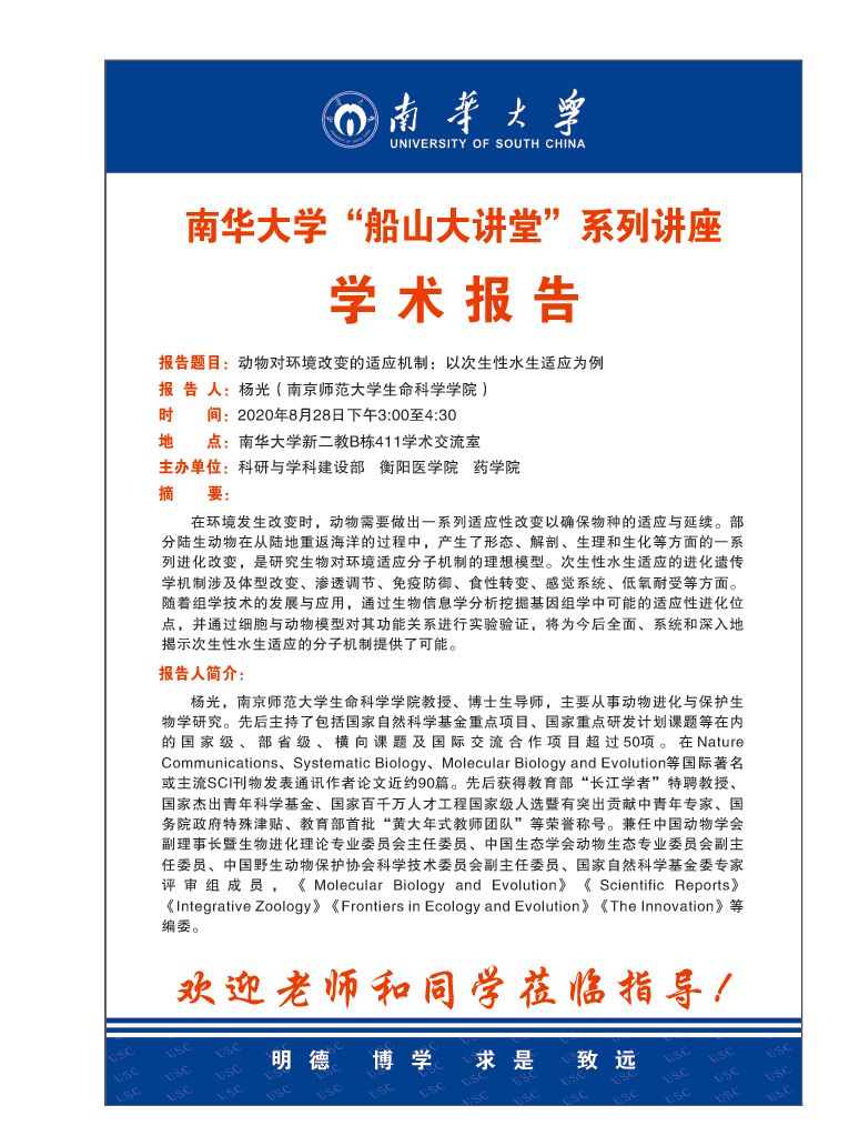 船山大讲堂--动物对环境改变的适应机制:以次生性水生适应为例