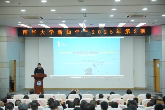 2月27日晚,华体会平台新知学堂2025年第2期在红湘校区图书馆一楼新知学堂如期举行。英国北爱尔兰奥斯特大学计算学院教授、计算机学院人工智能研究中心主任刘军,以“自主决策的可信人工智能模型和系统”为题作学术报告。校党委书记高山、全体在校领导、党委委员出席。校党委委员、副校长夏昆主持报告会。