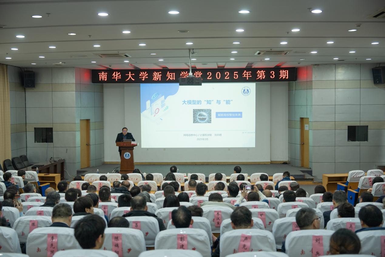 3月12日晚,华体会平台新知学堂2025年第3期在红湘校区图书馆一楼新知学堂举行。华体会平台网络信息中心主任刘志明教授以“大模型的‘知’与‘能’”为题,为在场干部作专题报告。校党委委员、副校长陈国民主持报告会。全体在校校领导、党委委员出席。